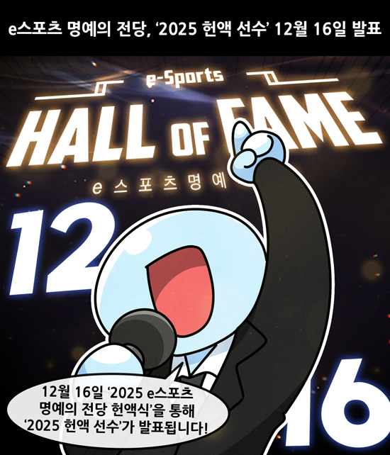 Çѱ¹e½ºÆ÷Ã÷Çùȸ(KeSPA)°¡ ¡®2025 e½ºÆ÷Ã÷ ¸í¿¹ÀÇ Àü´ç Çå¾×½Ä¡¯À» 12¿ù 16ÀÏ ¼¿ï ¸¶Æ÷ e½ºÆ÷Ã÷ ¸í¿¹ÀÇ Àü´ç¿¡¼ ÁøÇàÇÑ´Ù. ÀÌ¿¡ ¾Õ¼ 12¿ù 2ÀϺÎÅÍ 7ÀϱîÁö ¿Â¶óÀÎ ÅõÇ¥¸¦ ÅëÇØ 2026³â ÇÑ ÇØ e½ºÆ÷Ã÷ ¸í¿¹ÀÇ Àü´ç¿¡ Àü½ÃµÉ ¡®½ºÅ¸Á ºÎ¹®À» »Ì´Â´Ù.