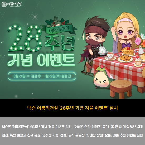 [³Ø½¼] ¾îµÒÀÇÀü¼³, 28Áֳ⠱â³ä °Ü¿ï À̺¥Æ® ½Ç½Ã  (0)  2025-12-24