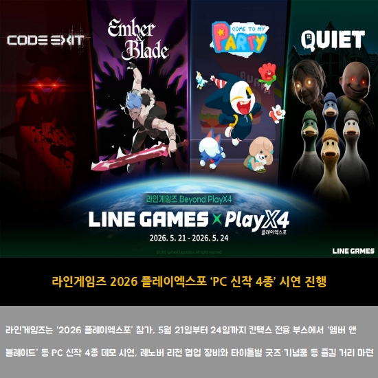 [¶óÀΰÔÀÓÁî] '2026 Ç÷¹ÀÌ¿¢½ºÆ÷' Âü°¡¡¦ PC ½ÅÀÛ 4Á¾ ½Ã¿¬