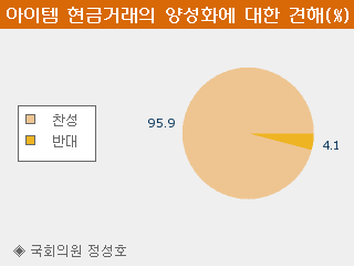 ÀÌ·¸µí ¾ÆÀÌÅÛ Çö±Ý°Å·¡ ½ÃÀåÀÌ °Å´ëȵÇÀÚ, ¿¸°¿ì¸®´ç À强ȣ ÀÇ¿øÀº ÀÚ½ÅÀÇ È¨ÆäÀÌÁö¿¡¼ ³×ƼÁð 444¸íÀ» ´ë»óÀ¸·Î ¡®°ÔÀÓ ¾ÆÀÌÅÛ Çö±Ý °Å·¡ÀÇ ¾ç¼ºÈ¿¡ ´ëÇÑ °ßÇØ¡¯¶ó´Â ÁÖÁ¦·Î ¼³¹®Á¶»ç¸¦ ½Ç½ÃÇߴµ¥, ±× °á°ú ÀÀ´äÀÚ Áß 95%(429¸í, 95.9%)°¡ Âù¼ºÇ¥¸¦ ´øÁ³°í ¹Ý´ë ÀǰßÀº 4.1%(18¸í)¿¡ ºÒ°úÇß´Ù. ÀÀ´äÀÚµéÀº Âù¼º ÀǰßÀ¸·Î ¡®¹ýÁ¦È°¡ ÃßÁøµÈ´Ù¸é °ÔÀÓ ¾ÆÀÌÅÛ°ú °ü·ÃµÈ ¹üÁËÇàÀ§¸¦ ¹æÁöÇÒ ¼ö ÀÖÀ» °ÍÀÌ´Ù¡¯¶ó¸ç ±àÁ¤ÀûÀÎ Àü¸ÁÀ» ³» ³õ¾Ò°í, ¹Ý´ë ÀǰßÀ¸·Î´Â ¡®¼¼±Ý¸¸ ´õ °ÈÈú »Ó ½ÇÈ¿¼ºÀÌ ¾ø´Ù¡¯°¡ ÁÖ·ù¸¦ ÀÌ·ð´Ù.