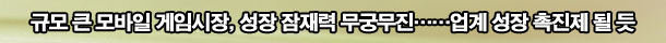 ¼ºÀå ÀáÀç·Âµµ ¹«½Ã¸øÇÒ ¼öÁØÀÌ´Ù. ÀÌ¹Ì ·¹µå¿À¼ÇÈ µÇ¾ú´Ù°í´Â ÇÏÁö¸¸ ¸ð¹ÙÀÏ ½ÃÀåÀÇ º¯ÇõÀº Áö±ÝºÎÅͰ¡ ½ÃÀÛÀ̶ó°í ÇØµµ °ú¾ðÀÌ ¾Æ´Ò ¸¸Å ¾öû³ª°Ô ºü¸£°Ô ÁøÇàµÇ°í ÀÖ´Ù. ÃÖ±Ù ¸ð¹ÙÀϰÔÀÓ ½ÃÀåÀº 4G(4¼¼´ë À̵¿Åë½Å)À¸·Î ÀÎÇØ ¶Ç ´Ù¸¥ ¼ºÀåÀÌ ¿¹°íµÇ°í ÀÖ´Ù. »ó¿ëȱîÁö´Â 1³âÀÌ ³Ñ´Â ½Ã°£ÀÌ °É¸®°ÚÁö¸¸ ±Ù ¹Ì·¡¿¡ Çõ½ÅÀûÀÎ º¯È¸¦ ¾ÕµÎ°í ÀÖ´Ù´Â °ÍÀº ºÐ¸í ¼ºÀå ÀáÀç·ÂÀÇ ¹«±Ã¹«ÁøÇÔÀ» ¾Ë¸®´Â °ÍÀÓ¿¡ Ʋ¸²ÀÌ ¾ø´Ù. ÇâÈÄ ¸ð¹ÙÀϰÔÀӻ簡 Áß°ß ¿Â¶óÀΰÔÀÓ»çÀÇ ¹Ý±â ȤÀº ³â ½ÇÀûÀ» ³Ñ¾î¼³ ¼öµµ ÀÖ´Ù´Â Àü¸ÁµéÀÌ ³ª¿À´Â °ÍÀº °áÄÚ Çã¾ðÀÌ ¾Æ´Ñ °ÍÀÌ´Ù.