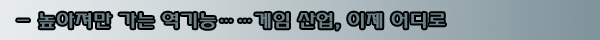 ÀÌ´ë·Î¶ó¸é ÇâÈÄ ÀÌ·¯ÇÑ ÀÏÀÌ ¶Ç ´Ù½Ã ÀϾÁö ¾ÊÀ» °ÍÀ̶ó´Â °ÍÀº ±× ´©±¸µµ Àå´ãÇÒ ¼ö ¾øÀ¸¸ç, °ÔÀÓ »ê¾÷Àº ±× »Ñ¸®ºÎÅÍ Èçµé·Á Áö±Ý±îÁö ½×¾Æ¿Ô´ø ½ÃÀåÀÌ ÇѼø°£¿¡ ¹«³ÊÁúÁöµµ ¸ð¸¥´Ù. °íºÎ°¡°¡Ä¡ »ê¾÷ÀÌÀÚ 21¼¼±â ±¹°¡ Áö¿ø »ê¾÷ÀÎ °ÔÀÓ »ê¾÷ÀÌ ¹«³ÊÁø´Ù´Â °ÍÀº Á¤ºÎ ÀÔÀå¿¡¼µµ ¸Å¿ì ¾Æ½¬¿î ÀÏÀÌ ¾Æ´Ò ¼ö ¾øÀ» °ÍÀÌ´Ù.