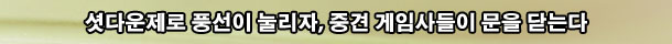 °íÀÛ 20¿© ¸í ¼öÁØÀÇ ¼Ò±Ô¸ð ½ºÆ©µð¿À°¡ ¹®À» ´Ý´Â ÀÏÀÌ ¾îµð ÇÏ·ç ÀÌÆ² ÀÏÀÌ³Ä ¸¶´Â, ¹®Á¦´Â ÀÌ·± ÀÏÀÌ ¼Ë´Ù¿îÁ¦¶ó´Â ±ÔÁ¦ ¶§¹®¿¡ ¹ú¾îÁø´Ù´Â °ÍÀÌ´Ù. ¾÷°è¿¡¼´Â ¼Ë´Ù¿îÁ¦ ½Ã½ºÅÛÀ» °®Ãß±â À§ÇÑ °úµµÇÑ ºñ¿ëÀ» °¨´çÇÏÁö ¸øÇÏ°í Æó¾÷ÇÑ ¼Ò±Ô¸ð °ÔÀÓ °³¹ß&¼ºñ½º»ç°¡ »ó´çÇÑ ¼ýÀÚ¿¡ À̸£°í ÀÖ´Â °ÍÀ¸·Î ºÐ¼®Çϰí ÀÖ´Ù. ÃÖ±Ù Çѱ¹ÀÔ¹ýÇÐȸÀÇ Á¶»ç¿¡ µû¸£¸é ¼Ë´Ù¿îÁ¦ µµÀÔ ½Ã °ÔÀÓ¾÷üµéÀº ½Ã½ºÅÛ ±¸Ãàºñ¿ë 55¾ï ¿ø, °³ÀÎÁ¤º¸º¸È£ ½Ã½ºÅÛ ±¸Ãàºñ¿ë 259¾ï ¿ø µî ÃÑ 314¾ï ¿øÀ» ½á¾ß ÇÏ´Â °ÍÀ¸·Î ³ªÅ¸³µ´Ù.