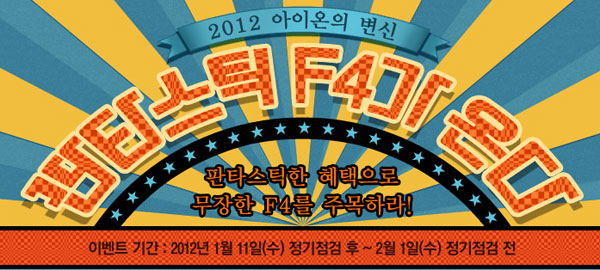 ¸ÕÀú ¡®¾ÆÀ̿¡¯Àº Áö³ 11ÀϺÎÅÍ ¡®ÆÇŸ½ºÆ½ F4°¡ ¿Â´Ù¡¯ À̺¥Æ®¸¦ ÁøÇà Áß¿¡ ÀÖÀ¸¸ç ¡®ºÒÀÇ ½ÅÀü¡¯, ¡®¾Ç¸ù¡¯, ¡®¾ÆÁ¶Åõ¶õ¿ä»õ¡¯, ¡®°Ã¶°¥ÄûÈ£¡¯, ¡®¾Æµå¸¶ ¼ºÃ¤¡¯,¡¯Å׿À¸ðº¸½º ºñ¹Ð ¿¬±¸¼Ò¡¯, ¡®µå¶ó¿ó´Ï¸£ µ¿±¼¡¯ µî 7°³ ÀνºÅϽº ´øÀüÀÇ ¾ÆÀÌÅÛ µå¶øÀ²ÀÌ ¿Ã¶ó°¡°í, 50·¹º§ ¹Ì¸¸ ´ëºÎºÐÀÇ ÀνºÅϽº ´øÀüÀÇ ÀçÀÔÀå½Ã°£ÀÌ ÁÙ¾îµå´Â ¾÷µ¥ÀÌÆ®¿Í ÇÔ²² ÁøÇàµÈ´Ù.