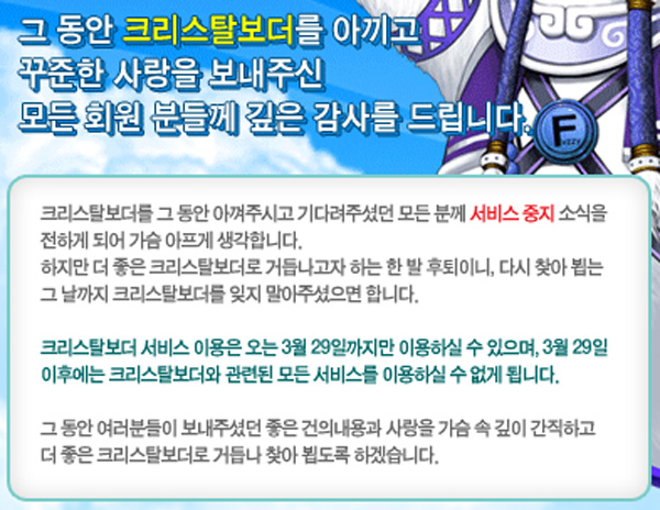 ¡â Å©¸®½ºÅ»º¸´õÀÇ ¼ºñ½º ÁßÁö °øÁö