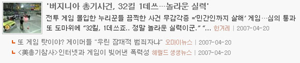 ±×·±µ¥ ÀÌ »ç°ÇÀ» °¡Áö°í ±¹³» ¾ð·ÐµéÀÌ °ÔÀÓ°ú ¿¬°ü Áö¾î º¸µµ¸¦ Çϰí ÀÖ´Ù. Ãѱ⠳»ç »ç°Ç¿¡ ¿¬°üÁö¾î FPS°ÔÀÓ°ú ÀÎÅÍ³Ý »ç¿ëÀڵ鿡 ´ëÇÑ ³¯ ¼¼¿î ºñÆÇÀ» ÇÏ°í ³ª¼± °ÍÀÌ´Ù.