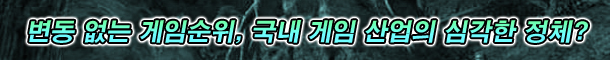 MMORPG, FPS, RTS, ijÁÖ¾ó °ÔÀÓ µî ´Ù¾çÇÑ À帣ÀÇ °ÔÀÓµéÀº ÇöÀçµµ ½ÃÀå¿¡ µîÀåÇϰí ÀÖÁö¸¸ ½ÃÀå¿¡ ÅëÇÏ´Â °ÔÀÓµéÀº ¿©ÀüÈ÷ 2006³âÀ̳ª ÇöÀ糪 °°´Ù. ±×¸®°í ¾ÕÀ¸·Î ÀÌ ¼øÀ§°¡ º¯°æµÉ °¡´É¼ºÀÌ Àû´Ù´Â °Íµµ ½É°¢ÇÑ ¹®Á¦ÀÌ´Ù. À¯ÀúµéÀÇ À̵¿ÀÌ ÀÌ·ç¾îÁöÁö ¾Ê´Â °Í, ±×¸®°í À¯Àúµé¿¡°Ô °ÔÀÓÀÇ À̵¿À» ÇÒ ¸¸Å ¸Þ¸®Æ®¸¦ ÁÖÁö ¾Ê´Â °Í ¸ðµÎ°¡ ¹®Á¦ÀÎ °ÍÀÌ´Ù.