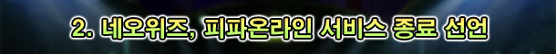 À̹ø ¼ºñ½º Á¾·á ¹ßÇ¥´Â °ÔÀ̸ӵéÀÇ ºÒÆíÀ» ÃÖ¼ÒÈ ½Ã۰íÀÚ ¹Ì¸® ÁøÇàÇÏ°Ô µÆ´Ù´Â °ÍÀÌ ³×¿ÀÀ§Áî°ÔÀÓÁîÀÇ ¼³¸íÀÌ´Ù. ÇöÀç »ç¿ëÀÚ°¡ º¸À¯ÇÑ ¾ÆÀÌÅÛ¿¡ ´ëÇØ¼´Â ÇǸÁij½¬¸¦ ÅëÇØ ȯºÒÇÒ ¿¹Á¤À̸ç ÇÇÆÄ¿Â¶óÀÎ2·Î ÀÌÀüÀ̺¥Æ®¸¦ ÅëÇØ Ãß°¡ÀûÀÎ ÇýÅÃÀ» Á¦°øÇÒ °èȹÀÌ´Ù. ÇöÀç ÇÇÆÄ¿Â¶óÀÎ1À» Áñ±â°í ÀÖ´Â »ç¿ëÀÚ°¡ ¿øÇÏ´Â °æ¿ì ȯºÒ±Ý¾×º¸´Ù 20% Áõ¾×µÈ ±Ý¾×¸¸Å ÇÇÆÄ¿Â¶óÀÎ2 ¾ÆÀÌÅÛ ±¸¸Å±ÇÀ¸·Î º¸»ó ¹ÞÀ» ¼ö ÀÖ°Ô ÇÒ °èȹÀ̶ó°í ÇÑ´Ù.
