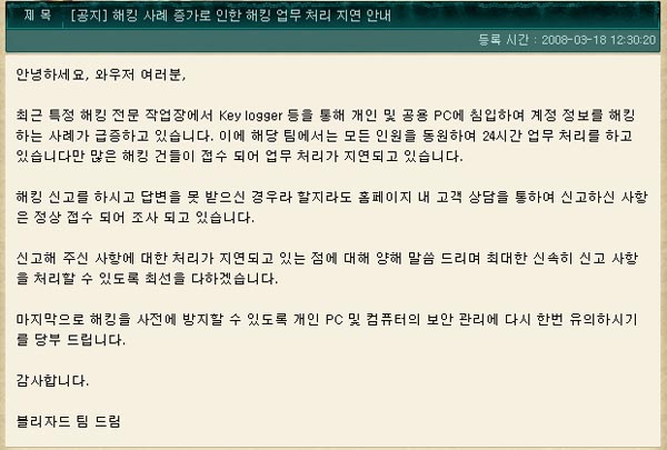 ¿Á¼ÇÀÇ ÇØÅ· ´ë¶õÀÌ ÀϾ¸é¼ ±¹³» °ÔÀÓ¾÷°èµµ °è¼ÓµÇ°í ÀÖ´Â ÇØÅ· ÇÇÇØ¸¦ ¹æÁöÇϱâ À§ÇÑ ³ª¸§´ë·ÎÀÇ ³ë·ÂÀ» ±â¿ïÀ̰í ÀÖ´Ù. ƯÈ÷ ´ëÇü MMORPG¸¦ ¿î¿µÇÏ¸é¼ ´Ù¼öÀÇ À¯ÀúµéÀ» È®º¸Çϰí ÀÖ´Â °ÔÀÓ»çµéÀº ÀÌ·± ¿òÁ÷ÀÓÀÌ ´õ¿í µÎµå·¯Áö°í ÀÖ´Ù. ºí·Ï¹ö½ºÅÍ MMORPGµéÀÇ °æ¿ì ¾ÆÀÌÅÛÀ̳ª °ÔÀӸӴϰ¡ »ó´çÈ÷ °í°¡ÀÇ °æ¿ì°¡ ¸¹±â ¶§¹®¿¡ °³ÀÎ Á¤º¸ º¸È£´Â ÇʼöÀûÀ̱⠶§¹®ÀÌ´Ù.
