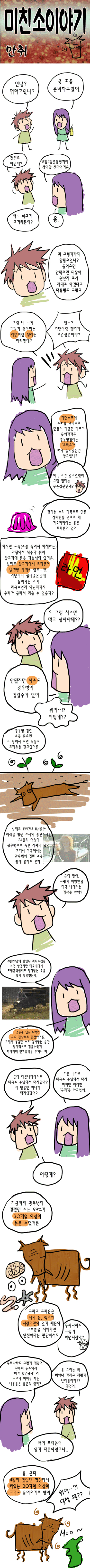 ±¤¿ìº´(ÎÊéÚÜ»)À̶ó. °ü°æº´(ÎÊ̳ܻ)À̳ª ±¤¿ìº´ ¸ðµÎ ÀÍÈ÷ µé¾îº» ¹Ù ÀÖ´Â Áúº´ÀÌÁö¸¸, °ü°æº´º¸´Ù´Â ±¤¿ìº´ÀÌ Á¶±Ý ´õ »ý¼ÒÇÏ°Ô ´Ù°¡¿Ã ¼ö¹Û¿¡ ¾øÀ» °ÍÀÌ´Ù. ±¤¿ìº´À̶õ ¡®¼Ò±¤¿ìº´¡¯À̶ó°í ºÒ¸®´Âµ¥, ¼Ò±¤¿ìº´Àº ÁÖ·Î ¼ºÀåµÈ ¼Ò¿¡¼ ³ªÅ¸³ª´Â ½Å°æÁúȯÀ¸·Î ÇÁ¸®¿Â(prion)À̶ó´Â ´Ü¹éÁúÀÌ ±× ¿øÀÎÀ̶ó°í ¾Ë·ÁÁ® ÀÖ´Ù. ¼Ò±¤¿ìº´Àº º¯ÇüÇÁ¸®¿Â´Ü¹éÁú¿¡ ¿À¿°µÈ Á¶Á÷À̳ª ¿À¿°µÈ À°°ñºÐ ÷°¡ »ç·á¸¦ ¸ÔÀ½À¸·Î½á ¹ß»ýµÇ´Âµ¥, 1986³â ¿µ±¹¿¡¼ óÀ½ ¼Ò±¤¿ìº´¿¡ °É¸° ¼Ò°¡ º¸°íµÈ ÀÌÈÄ ¿µ±¹À» ºñ·ÔÇÑ À¯·´ °¢±¹¿¡¼ ¸¹Àº ¼Ò±¤¿ìº´ »ç·Ê°¡ º¸°íµÇ¾úÀ¸¸ç, ¹Ì±¹, ÀϺ»¿¡¼µµ ¹ß»ýÀÌ º¸°íµÈ ¹Ù ÀÖ´Ù°í ÇÑ´Ù.