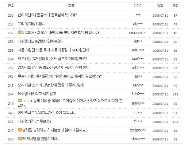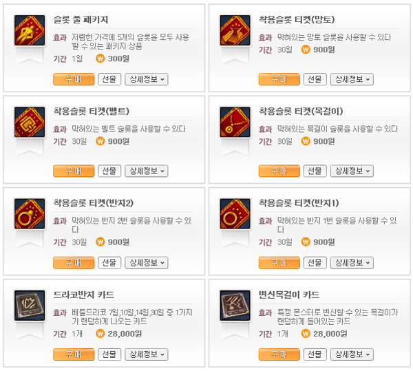 ¿©±â¿¡ ±â¸§À» º×´Â °ÍÀº ·£´ýÀ¸·Î »ç¿ë ±â°£ÀÌ ³ª¿À´Â ¾ÆÀÌÅÛµéÀÌ ÀÖ´Ù´Â °ÍÀÌ´Ù. °¡°ÝÀº ¶È°°Àºµ¥ ¾ÆÀÌÅÛÀÌ È¿°ú¸¦ ¹ßÈÖÇÏ´Â ±â°£ÀÌ 7ÀÏ, 10ÀÏ, 14ÀÏ, 30ÀÏÀÌ ·£´ýÇÏ°Ô ³ª¿À±â ¶§¹®¿¡ ±×¾ß¸»·Î ¡®µ·À» ¹ö¸®°Ô ¸¸µå´Â¡¯¾ÆÀÌÅÛÀ¸·Î ÀÛ¿ëÀ» Çϰí ÀÖ´Ù. ½ÇÁ¦ À¯ÀúµéÀº °Ô½ÃÆÇ¿¡¼ ¡°30ÀÏÂ¥¸®¸¦ »Ì´Â °ÍÀº ·Î¶Ç¿¡ °É¸®±â¸¦ Èñ¸ÁÇÏ´Â Á¤µµ¡±¶ó°í ºÒ¸¸À» ÅͶ߸®°í ÀÖ´Ù.