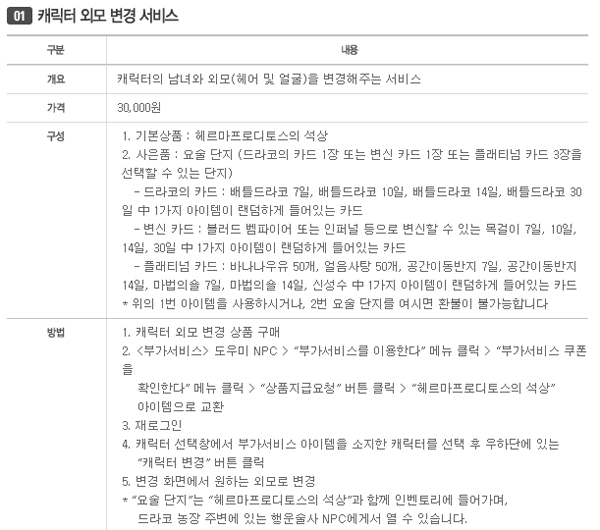 7. ¿¹Àü¿¡ ¿Ü¸ðº¯°æ½Ã½ºÅÛÀ¸·Î ÆÇ¸ÅÇß´ø µå¶óÄÚÀÇ Ä«µå, º¯½ÅÀÇ Ä«µå°¡ ij½Ã ¾ÆÀÌÅÛÀ¸·Î 28,000¿ø¿¡ ÆÇ¸ÅµÇ°í ÀÖ´Ù. ±×·¸´Ù¸é Á¤¾×Á¦ ¿ä±Ý ¼¹öÀÇ ¿Ü¸ðº¯°æ ºÎ°¡¼ºñ½ºÀÇ ½ÇÁúÀûÀÎ °¡°ÝÀº 2,000¿øÀ̶ó´Â À̾߱âÀΰ¡? - ±âÁ¸ÀÇ ¿Ü¸ðº¯°æ½Ã½ºÅÛ¿¡¼ µå¶óÄÚÀÇ Ä«µå, º¯½ÅÀÇ Ä«µå´Â ¿ä¼ú´ÜÁö¶ó´Â »çÀºÇ° ÇüÅ·ΠÁõÁ¤ÀÌ µÇ¾ú½À´Ï´Ù. ÀÌ »çÀºÇ°°ú À¯·á·Î ÆÇ¸ÅµÇ´Â ¾ÆÀÌÅÛÀÌ µ¿ÀÏÇÑ ¹°Ç°Àº ¾Æ´Õ´Ï´Ù.