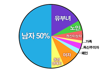 ¡®¼¼»ó Àΰ£µé Áß ¹ÝÀº ¿©ÀÚ¡¯¶ó´Â ¸»ÀÌ ÀÖ´Ù. ±×·¯ÇÔ¿¡µµ ºÒ±¸ÇÏ°í ¿ì¸®°¡ ¿¬¾Ö¸¦ ÇÏÁö ¸øÇÏ´Â ÀÌÀ¯´Â ¹«¾ùÀϱî? ¸¸¾à ÀÚ½ÅÀÇ °¡½¿¿¡ ¼ÕÀ» ¾ñ°í ¡®³ª´Â º¯Åµµ ¾Æ´Ï°í Á¤½Å°ú ½Åü °Ç°ÇÑ ¸ÚÁø ´ëÇѹα¹ ÀþÀºÀÌÀÌ´Ù¡¯¶ó´Â »ý°¢À» Çϰí ÀÖ´Â »ç¶÷¸¸ ¾Æ·¡ÀÇ ±×·¡ÇÁ¸¦ ÁÖ¸ñÇØ º¸µµ·Ï ÇÏÀÚ.