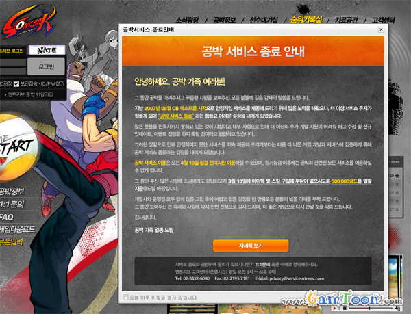 ÃÖ±Ù ¿£Æ®¸®ºê¼ÒÇÁÆ®´Â °øÁö¸¦ ÅëÇØ Àڻ簡 ¼ºñ½º¸¦ Çϰí ÀÖ´ø ijÁÖ¾ó Á·±¸ °ÔÀÓÀÎ °ø¹ÚÀÇ ¼ºñ½º¸¦ 4¿ù 10ÀϺηΠÁ¾·áÇÑ´Ù°í ¹àÇû´Ù. Áö³ 2007³â 8¿ù Ŭ·ÎÁŸÅ×½ºÆ®¸¦ ½ÃÀÛÀ¸·Î º»°ÝÀûÀ¸·Î ½ÃÀå¿¡ µîÀåÇÑ °ø¹ÚÀº, ¡®½Î³ªÀ̶ó¸é ¹«Á¶°Ç Á·±¸¡¯¶ó´Â ijġÇÁ·¹ÀÌ¿Í ¿ÀÀοë Ç÷¡½Ã ¾Ö´Ï¸ÞÀ̼ÇÀ» Àü¸é¿¡ ºÎ°¢½ÃŰ¸é¼ ½ÃÀå¿¡¼ ÁÁÀº ¹ÝÀÀÀ» ¾ò¾ú´ø ½ºÆ÷Ã÷ ijÁÖ¾ó °ÔÀÓÀ̾ú´Ù. À̹ÌÁö»Ó¸¸ ¾Æ´Ï¶ó Á·±¸ÀÇ Æ¯¼ºÀ» °ø¹Ú ƯÀ¯ÀÇ Ä³Á־󼺰ú Àß ¹ö¹«·Á µ¶Æ¯ÇÑ °ÔÀÓ¼ºÀ¸·Î ºú¾î³Â´Ù´Â ÁÁÀº Æò°¡µµ ÀÕµû¶ú´Ù.
