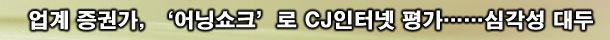 ÇÑÆí, Áõ±Ç°¡¿¡¼± CJÀÎÅͳÝÀÇ ÀÌ·± ½ÇÀû ºÎÁøÀ» '¾î´×¼îÅ©(Earning shock, ±â¾÷ÀÇ ½ÇÀûÀÌ ¿¹»óÄ¡º¸´Ù ÈξÀ ÀúÁ¶ÇÏ°Ô ³ª¿ÔÀ» °æ¿ì)'·Î Æò°¡ÇÏ¸é¼ ÀÕ´Þ¾Æ ÅõÀÚÀǰ߰ú ¸ñÇ¥ÁÖ°¡ ÇÏÇâÁ¶Á¤¿¡ ³ª¼°í ÀÖ´Ù.