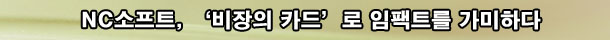 ºÐ¸í 2007³âÀº NC¼ÒÇÁÆ®ÀÇ ¡®»õ·Î¿î Ä«µå¡¯°¡ µîÀåÇÒ °ÍÀÓÀ» ±â´ëÇØ º¼ ¼ö ÀÖ´Â ½Ã±âÀ̱⵵ Çß´Ù. ȸ»ç ⸳ 10ÁÖ³âÀ̱⵵ ÇßÁö¸¸, ±æµå¿ö¿Í ¾ß½ÉÂ÷°Ô ¼±º¸ÀÎ ¾¾Æ¼¿ÀºêÈ÷¾î·ÎÀÇ ±¹³» ¼ºñ½º ½ÇÆÐ¿Í Áß´Ü µîÀ¸·Î ÀÎÇØ(ÇØ¿Ü ¼ºñ½º¿Í´Â º°°³·Î) ±¹³»¿¡¼ÀÇ ÀÔÁö°¡ °è¼ÓÇØ¼ ÁÙ¾îµé°í ÀÖ¾ú±â ¶§¹®À̾ú´Ù. ƯÈ÷ NC¼ÒÇÁÆ®ÀÇ ±¹³» ÀÚü ½ºÆ©µð¿À°¡ ¸¸µé¾î ³½ ÈļÓÀÛµéÀÇ µîÀåÀÌ °è¼ÓÇØ¼ ´ÊÃçÁö°í ÀÖ¾ú´ø °Í¿¡ ¾÷°è´Â 2007³âÀ̾߸»·Î NC¼ÒÇÁÆ®°¡ Ä®À» »©´Â °ÍÀÌ ¾Æ´Ï³Ä´Â ±â´ë¸¦ Çϰí ÀÖ¾ú´Ù.
