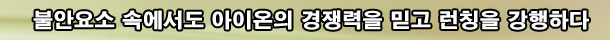 ±×·¯³ª ¿©ÀüÈ÷ ºÒ¾È°¨Àº ³²¾Æ ÀÖ¾ú´Ù. ¹«¾ùº¸´Ù ¡®¾ÆÀ̿¡¯ÀÌ 3¹øÀÇ Å¬·ÎÁŸ¸¦ °ÅÄ¡¸é¼ ¿Ïº®ÇÏ°Ô À¯ÀúµéÀ» ÈÖ¾îÀâÁö ¸øÇϰí ÀÖ´Ù´Â °ÍÀÌ °¡Àå Å« ¹®Á¦¿´´Ù. ÇÏÁö¸¸ NC¼ÒÇÁÆ®´Â Ãß°¡ÀûÀΠŬ·ÎÁŸÅ×½ºÆ®¸¦ °ÅÄ¡Áö ¾ÊÀº ä·Î ¡®¾ÆÀ̿¡¯À» Á¤»óÀûÀÎ ½ºÄÉÁì·Î ¿ÀǺ£Å¸Å×½ºÆ®¸¦ °ÇàÇϰڴٴ ÀÇÁö¸¦ º¸¿´´Ù. ÀÌ·± NC¼ÒÇÁÆ®ÀÇ ÀÇÁö´Â ´ç½Ã ÁÖÁÖµéÀÌ ÁÖ¸ñÇϰí ÀÖ´Â ¾Ö³Î¸®½ºÆ®µ¥ÀÌ¿¡¼ ¡®¾ÆÀ̿¡¯ÀÇ ¿ÀǺ£Å¸Å×½ºÆ®¸¦ È®Á¤½ÃŰ´Â ¹ß¾ðÀÌ ³ª¿È¿¡ µû¶ó »ç½Ç»ó ¾ÆÀÌ¿ÂÀÇ Ãß°¡ÀûÀÎ ÀÏÁ¤ ¿¬±â´Â ¾ø¾îÁö´Â °ÍÀ¸·Î ¹Þ¾Æµé¿©Á³´Ù. ¸¸¾à Â÷±â ÁÖ·ÂÀÛÀÇ È®Á¤µÈ ÀÏÁ¤À» ´Ù½Ã ¿¬±â½ÃŲ´Ù¸é NC¼ÒÇÁÆ®´Â »ó´çÇÑ À¯, ¹«ÇüÀÇ ÇÇÇØ¸¦ ¹ÞÀ» °ÍÀ̱⠶§¹®¿¡ ÀÏÁ¤ ¿¬±â´Â »ý°¢Çϱâ Èûµç °ÍÀÌ »ç½ÇÀ̾ú°í, ¶Ç ÀÌ »ç½ÇÀ» Àß ¾Ë°í ÀÖ´Â »çÃøÀÌ ¡®¾ÆÀ̿¡¯ÀÇ ¿ÀǺ£Å¸ ÀÏÁ¤ÀÇ È®Á¤À» ÁÖÁÖµé ¾Õ¿¡¼ ¾ð±ÞÇß´Ù´Â °ÍÀº »ç½Ç»óÀÇ ¡®¿ÀǺ£Å¸ ÀÏÁ¤¡¯À» ¹ßÇ¥ÇÑ °Í°ú ´Ù¸¦ ¹Ù°¡ ¾ø´Ù´Â °ÍÀÌ ¾÷°èÀÇ °üÃøÀ̾ú´Ù.