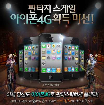 ¸ÕÀú ¡®ÀÓ¹« ¿Ï¼öÇϰí iPhone 4G ¹ÞÀÚ!¡¯´Â °ÔÀÓ³» ÀÓ¹« ´Þ¼º½Ã Â÷¼¼´ë Çʼö ¾ÆÀÌÅÛÀÎ ¾ÆÀÌÆù 4G¸¦ Á¦°øÇÏ´Â À̺¥Æ®·Î ÁÖ¾îÁø ÀÓ¹«¸¦ ¸¹ÀÌ ´Þ¼ºÇÒ¼ö·Ï °æÇ°´ç÷ È®·üÀÌ ³ô¾ÆÁ® °ÔÀ̸ӵéÀÇ Âü¿©°¡ ±â´ëµÈ´Ù.
