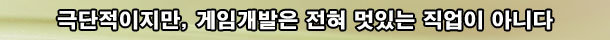 Á¤¸»·Î, °ÔÀÓ °³¹ßÀÚ¶ó´Â Á÷¾÷Àº ¹Û¿¡¼ ¹Ù¶óº¸´Â ¡®·Î¸Á¡¯À̶ó´Â ´Ü¾î¿Í´Â ÇϵîÀÇ »ó°üÀÌ ¾ø´Â, ÀüÇô ¸ÚÀÖ´Â Á÷¾÷ÀÌ ¾Æ´Ï´Ù. ³Ê¹«³ª °í»ý½º·´°í, ¸¹Àº °ÍÀ» °ßµ®³»¾ß ÇÏ¸ç ºÎÁ¶¸®ÇÔ°ú À¯È¤¿¡ °á½ÉÀÌ Èçµé¸®´Â Áö±ÝÀÇ ¿ì¸®¿Í ÀüÇô ´Ù¸£Áö ¾Ê´Ù.