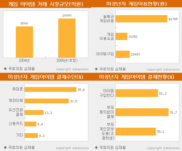 ƯÈ÷ Á¶»ç´ë»óÀÇ 61.3%°¡ ¾ÆÀÌÅÛÀ» ±¸ÀÔÇÑ °æÇèÀÌ ÀÖÀ¸¸ç, °ÔÀÓ¾ÆÀÌÅÛÀ» ±¸ÀÔÇÒ ¶§ 76.7%°¡ ºÎ¸ðÀÇ µ¿ÀÇ ¾øÀÌ ºñ¿ëÀ» °áÁ¦Çϰí ÀÖ´Ù´Â Á¶»ç °á°úµµ ÷ºÎÇß´Ù. Á¶»ç ´ë»óÁß¿¡ ÃʤýÁßÇб³»ý 58.1%¿Í °íµîÇлýÀÇ 39%´Â ºÎ¸ðÀÇ °³ÀÎÁ¤º¸¸¦ µµ¿ëÇÏ¿© ¸¶Ä¡ ºÎ¸ð°¡ Á÷Á¢ °áÁ¦ÇÏ´Â °Íó·³ »ç¿ëÇϰí ÀÖ´Ù°í. ¶ÇÇÑ ´Ù¸¥ ¼ºÀÎÀÇ °³ÀÎÁ¤º¸¸¦ ÀÌ¿ëÇÑ ¹üÁËÇü ¼ºÀÎ Ç༼µµ ´Ù¼ö ÀÖ´Â °ÍÀ¸·Î ¹àÇôÁ³´Ù.