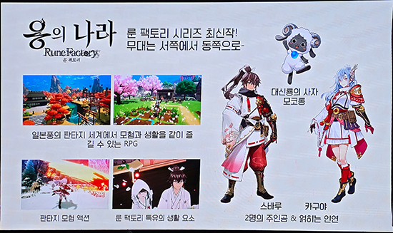 ¡®¿ëÀÇ ³ª¶ó ·é ÆÑÅ丮¡¯´Â ³ó»ç¡¤ÀüÅõ¡¤¿¬¾Ö ¿ä¼Ò¸¦ ¸ðµÎ ´ãÀº ÆÇŸÁö ¶óÀÌÇÁ RPG ¡®·é ÆÑÅ丮¡¯ ½Ã¸®Áî ÃÖ½ÅÀÛÀÌ´Ù. ¿ëÀ¸·ÎºÎÅÍ ÃູÀ» ¹ÞÀº ¸¶À»¿¡¼ ³óÀåÀ» ²Ù¸®°í ¸ó½ºÅÍ¿Í ½Î¿ì¸é¼ Áֹεé°ú °ü°è¸¦ ½×´Â È帧Àº ½Ã¸®Áî ÀüÅëÀ» ±×´ë·Î µû¸¥´Ù. ¿©±â¿¡ ´Ù¾çÇÑ ½Å±â¿Í ¹«±â¸¦ Ȱ¿ëÇÏ´Â ¾×¼Ç, µ¿·á¿Í ÇÔ²² ¶°³ª´Â ¸ðÇè, ƯÁ¤ ij¸¯ÅÍ¿Í È¥·Ê¸¦ ¿Ã¸± ¼ö ÀÖ´Â °ü°è ½Ã½ºÅÛÀ¸·Î Áñ±æ °Å¸®¸¦ ´Ã·È´Ù.