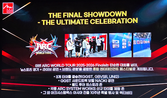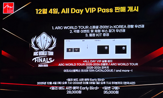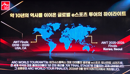 ¹ßǥȸ ÇöÀå¿¡¼´Â ¿ì¼± ¡®¾ÆÅ© ¿ùµå Åõ¾î¡¯ Çѱ¹ °³ÃÖ ¼Ò½ÄÀÌ ÀüÇØÁ³´Ù. ¾ÆÅ©½Ã½ºÅÛ¿÷½º ´ëÇ¥ °ÝÅõ °ÔÀÓÀ» Áß½ÉÀ¸·Î ¼¼°è °¢Áö¿¡¼ ¿¹¼±À» ÁøÇàÇϰí, ½ÃÁ𠸶Áö¸·¿¡ ÃÖÁ¤»ó±Þ ¼±¼öµéÀÌ ¸ð¿© °ÝÀüÀ» ÆîÄ¡´Â ±Û·Î¹ú ¸®±×´Ù. Áö±Ý±îÁö ÆÄÀ̳Π¹«´ë´Â ¹Ì±¹¿¡¼¸¸ ¿·ÈÁö¸¸, 2025~2026 ½ÃÁð ÃÖÁ¾ÀüÀº óÀ½À¸·Î Çѱ¹ ÀÏ»ê ŲŨ½º¿¡¼ ¿¸°´Ù.