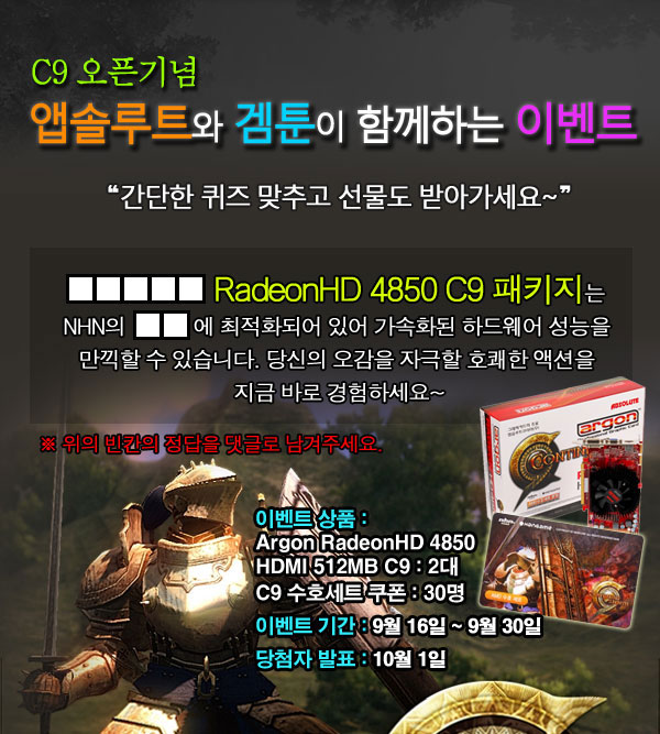 ¨Í¨Þ¨Ó¨Û¨Ú Radeon HD 4850 C9 ÆÐŰÁö´Â NHNÀÇ C¨ï ¿¡ ÃÖÀûȵǾî ÀÖ¾î °¡¼ÓÈµÈ Çϵå¿þ¾î ¼º´ÉÀ» ¸¸³£ÇÒ ¼ö ÀÖ½À´Ï´Ù. ´ç½ÅÀÇ ¿À°¨À» ÀÚ±ØÇÒ È£ÄèÇÑ ¾×¼ÇÀ» Áö±Ý ¹Ù·Î °æÇèÇϼ¼¿ä~