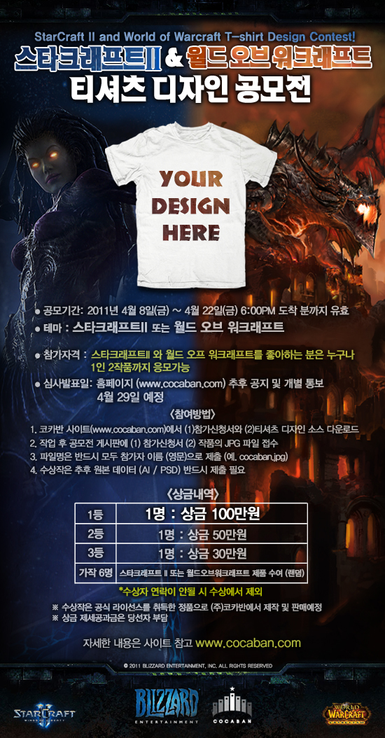 Á¢¼ö 2011³â 4¿ù 8ÀÏ(±Ý) ~ 4¿ù 22ÀÏ(±Ý) 6PM µµÂø ºÐ±îÁö À¯È¿ ¢ßÄÚÄ«¹Ý ȨÆäÀÌÁö(www.cocaban.com)³» ¡®½ºÅ¸Å©·¡ÇÁÆ®II & ¿ùµå ¿Àºê ¿öÅ©·¡ÇÁÆ® Ƽ¼ÅÃ÷ µðÀÚÀÎ °ø¸ðÀü¡¯ °Ô½ÃÆÇ