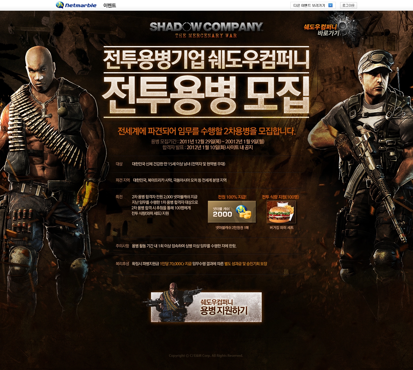 ½¦µµ¿ìÄÄÆÛ´Ï 2Â÷ CBT¸¦ ÇϽǺеéÀº http://shadow.netmarble.net/main.asp ·Î °¡¼Å¼ ½ÅûÇϼ¼¿ä.
