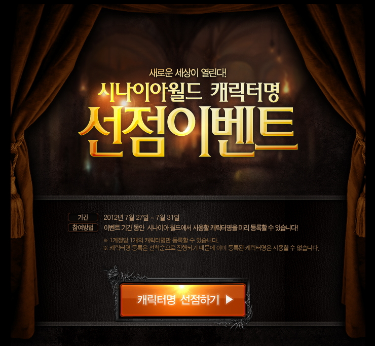 À̺¥Æ®ÆäÀÌÁö -> http://www.darkeden.com/event/2012/0727_charfirst/