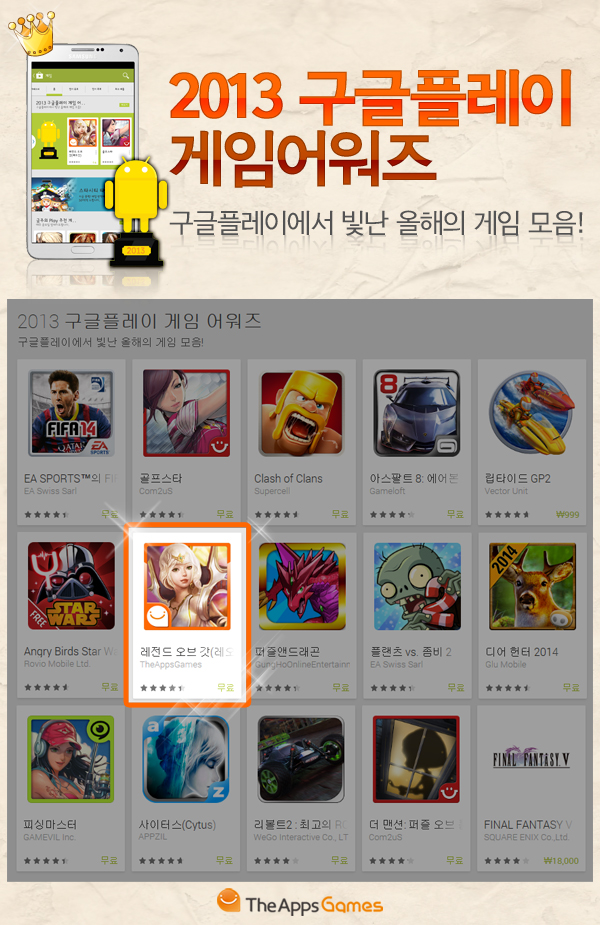 ÀúÈñ ·¹Àüµå ¿Àºê °«ÀÌ À¯Àú¿©·¯ºÐµéÀÇ ¼º¿ø¿¡ ÈûÀÔ¾î ''2013 ±¸±Û°ÔÀÓ¾î¿öÁî¿¡ ¼±Á¤''µÇ¾ú½À´Ï´Ù.