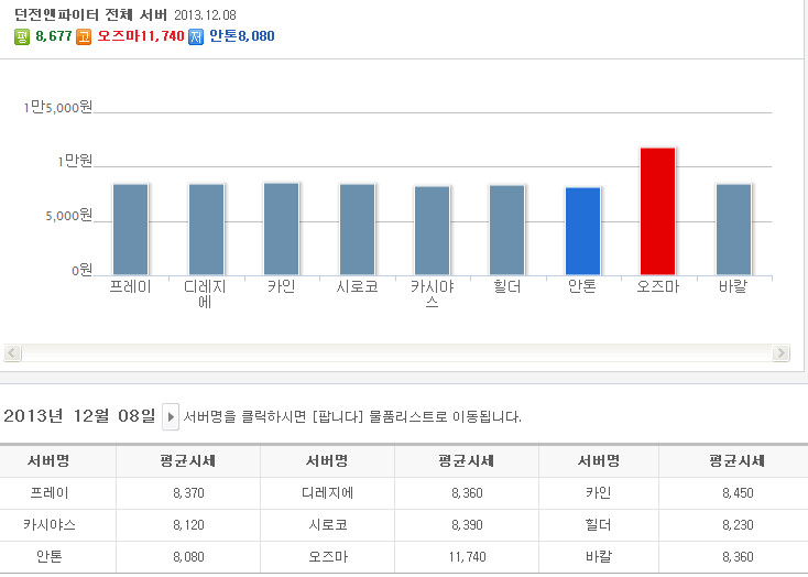 Æò±ÕÀûÀ¸·Î´Â 8,677¿øÀÌ°í °¡Àå ³ôÀº ½Ã¼¼´Â ¿ÀÁ ¼¹ö·Î 11,740