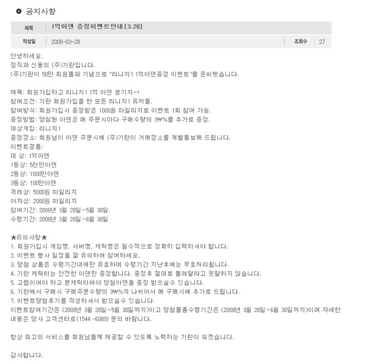 ±â¶õ 1¾ï¾Æµ§ ÁõÁ¤ À̺¥Æ®(¸®´ÏÁö À¯Àú¸¦ À§ÇÑ À̺¥Æ®)