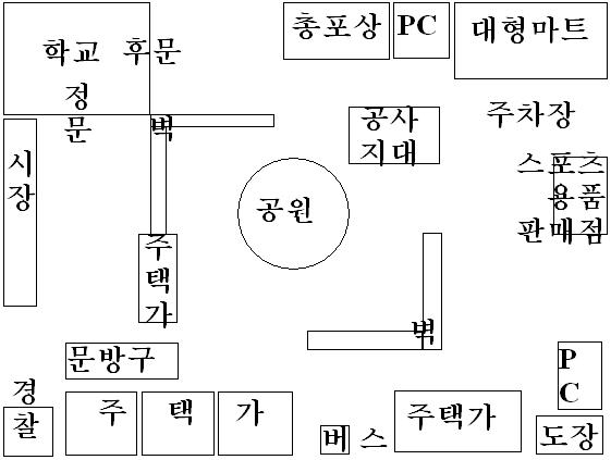 °¢¸ñ - ȹµæÀå¼Ò : °ø»çÁö´ë , Çб³ , ´ëÇü¸¶Æ® , ½ÃÀå , °ø¿ø , ¹ö½º Á¤°ÅÀå , µµÀå (¸Å¿ì ±¸Çϱ⠽±Áö¸¸ Å« Ãæ°Ý¿¡ ½±°Ô ºÎ·¯Á® ¹ö¸°´Ù.)
