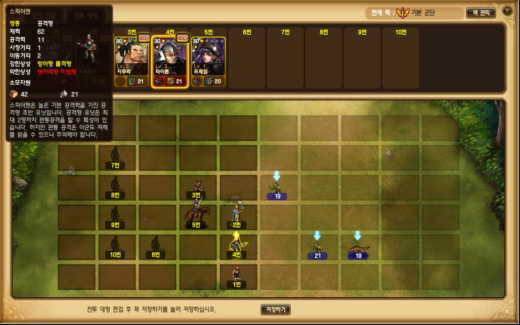 °¢°¢ÀÇ ´Ù¸¥ Á÷¾÷ÀÇ ¿µ¿õµéÀ» »Ì¾Æ¼ ÀÚ½ÅÀÇ ±º´Ü Ư¡¿¡ ¾Ë¸Â°Ô Àü·«ÀûÀ¸·Î ¹èÄ¡ÇÏ¿© »ç³É, ÀüÅõ¸¦ ÇÒ ¼ö ÀÖ½À´Ï´Ù. °¢°¢¿¡ »óȲ¿¡ ¸ÂÃç È¿À²ÀûÀÎ ÀüÅõ ¹æ¹ýÀ» °®Ãß¾î¾ß ÇÏ´Ï, ¿µ¿õ Ä«µå¸¦ ÀÌ¿ëÇÏ¿© ´Ù¾çÇÑ °ø·«À» ÇÏ´Â Àç¹Ì°¡ ½ò½òÇÕ´Ï´Ù.