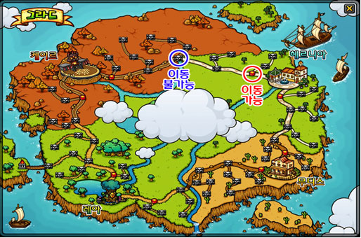 »¡°£ Á¡À̳ª ÆÄ¶õ Á¡À¸·Î ÂïÇôÀÖ´Â Áö¿ªÀº À̵¿ °¡´ÉÇÑ Áö¿ªÀ̸ç, ÇØ°ñ ¾ÆÀÌÄÜÀ¸·Î ÂïÇôÀÖ´Â Áö¿ªÀº Äù½ºÆ®¸¦ ÅëÇØ »¡°£ Á¡À̳ª ÆÄ¶õ Á¡À¸·Î ¹Ù²ã À̵¿À» ÁøÇàÇÒ ¼ö ÀÖ´Ù.