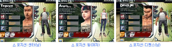 █ °³¼º¿¡ ¸Â´Â Æ÷Áö¼Ç ¼±Åà <½½·¦¼¦>¿¡¼´Â ÃÖÃÊ Ä³¸¯ÅÍ »ý¼º ½Ã °ñ¸®(°ñŰÆÛ)¸¦ Á¦¿ÜÇÏ°í ¡®¼¾ÅÍ¡¯, ¡®À®¡¯, ¡®µðÆæ½º¡¯ Æ÷Áö¼ÇÀ» ¼±ÅÃÇØ Ç÷¹ÀÌ ÇÒ ¼ö ÀÖ´Ù. Æ÷Áö¼Ç ³»¿¡´Â ³²/¿© ij¸¯ÅͰ¡ Á¸ÀçÇϸç 1Â÷ CBT¿¡¼´Â ÃÑ 8¸íÀÇ Ä³¸¯ÅÍ(³²ÀÚ 5¸í, ¿©ÀÚ 3¸í)°¡ µîÀåÇÑ´Ù.