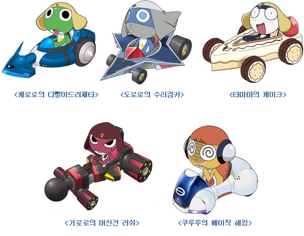 [Äɷηη¹À̽Ì]¿¡´Â ¿øÀÛ ¾Ö´Ï¸ÞÀ̼ǿ¡ µîÀåÇÏ´Â Â÷·®°ú ¼ÒǰÀ» °³Á¶ÇÏ¿© ¸¸µç ÄɷηΠ¼Ò´ë¿øµéÀÇ ¸Å·Â¸¸Á¡ Àü¿ëÂ÷·®ÀÌ µîÀåÇÑ´Ù. ¿øÀÛ¿¡ µîÀåÇÏ´Â ÄɷηÎÀÇ Ã»¼Ò±â Â÷·®À» ¼ÒÇüÀÚµ¿Â÷ ÇüÅ·Πº¯È¯½ÃŲ ¡®´Ù»¡¾Æµå·ÁÁ¦Å¸¡¯, Ÿ¸¶¸¶ÀÇ ÄÉÀÌÅ© Â÷·®À» ¼ÒÇüÀÚµ¿Â÷ ÇüÅ·Πº¯È¯½ÃŲ ¡®ÄÉÀÌÅ©¡¯, µµ·Î·ÎÀÇ ¼ö¸®°Ë ¸ð¾çÀ» ¼ÒÇüÂ÷·®¿¡ Á¢¸ñ½ÃŲ ¡®¼ö¸®°ËÄ«¡¯ µî [Äɷηη¹À̽Ì]ÀÇ Àü¿ëÂ÷·®Àº °¢ ij¸¯ÅÍÀÇ °³¼º¸¸Á¡ Ư¡À» ´õ¿í ºÎ°¢½ÃŲ´Ù.