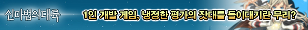 ±×¸®°í ±×·± »ç·Êµé¿¡ ÀÏħÀ» °¡Çϵí, 2008³â °ÔÀÓ½ÃÀå¿¡ ´ç´çÈ÷ ¡®1ÀÎ °³¹ß, 1ÀÎ ¼ºñ½º °ÔÀÓ¡¯À̶ó´Â ŸÀÌÆ²À» ´Þ°í ³ªÅ¸³ °ÔÀÓÀÌ ÀÖ´Ù. ÃÖ±Ù ¿£Æ®¸®ºê¿Í Á¤½Ä ÆÛºí¸®½Ì °è¾àÀ» ü°áÇÑ ¡®½Å ¸¶¹ýÀÇ ´ë·ú(ÀÌÇÏ ½Å¸¶´ë)¡¯ÀÌ ¹Ù·Î ±×°ÍÀÌ´Ù.