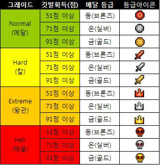 ¡ã ÆòÁ¡½Ã½ºÅÛ-°¢ ±×·¹À̵庰·Î ȹµæÇÒ ¼ö ÀÖ´Â µî±Þ¿¡ µû¸¥ Á¡¼öÇ¥