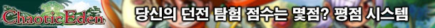 ÆòÁ¡ ½Ã½ºÅÛÀº °¢°¢ÀÇ ´øÀüÀ» ŽÇèÇϰí Ŭ¸®¾îÇÒ ¶§¸¶´Ù ±×¿¡ ´ëÇÑ Æò°¡¸¦ Á¡¼ö·Î ¸Å°Ü ±â·Ï, ±×¿¡ µû¸¥ º¸»óÀ» Áö±ÞÇÏ´Â ½Ã½ºÅÛÀÌ´Ù. ÆòÁ¡À» ±â·ÏÇÏ´Â ±âÁØÀº ´øÀü¿¡ ´ëÇÑ Å½»ö·ü°ú ¸ó½ºÅÍ Å³¼ö, À©Ä«µå ȹµæ °³¼ö¿Í Á¦Çѽ𣠵îÀ¸·Î ±¸¼ºµÇ¾î ÀÖ´Ù. À©Ä«µå´Â ´øÀü¿¡ ¹èÄ¡µÈ ÀÏÁ¾ÀÇ ¾ÆÀÌÅÛÀ¸·Î ÇØ´ç ´øÀüÀÇ À©Ä«µå¸¦ ¸ðµÎ ¼öÁýÇÏ´Â °æ¿ì ÃÖ°í Á¡¼ö¸¦ ¾òÀ» ¼ö ÀÖ´Ù.