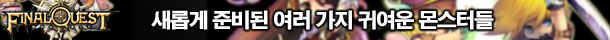 ¡®ÆÄÀ̳ÎÄù½ºÆ®¡¯´Â ij¸¯ÅͺÎÅÍ ¹à°í ±Í¿©¿î À̹ÌÁöÀÌ´Ù. ¸ó½ºÅÍ ¶ÇÇÑ ´Ù¸¥ ¾×¼Ç°ÔÀÓµé°ú´Â ´Þ¸® ¾Æ±âÀÚ±âÇÏ¸ç ±Í¿©¿î ¸ð¾çÀ¸·Î Ä£±Ù°¨À» ÁÖ°í ÀÖ´Ù. À̹ø Å×½ºÆ®¿¡´Â ±âÁ¸¿¡ ¼±º¸¿´´ø 200¿©Á¾ÀÇ ¸ó½ºÅÍ¿¡ »õ·Ó°Ô 30¿©Á¾ÀÇ ¸ó½ºÅ͸¦ Ãß°¡Çß´Ù. ÀÌ·¯ÇÑ ¸ó½ºÅ͵éÀº »ýÁ㳪 ²É°Ô, ¹ö¼¸ µî µ¿¹°°ú ½Ä¹° µîÀ» ¼ÒÀç ÇÑ °Í°ú ³¿ºñ³ª ÁÖÀüÀÚ µîÀÇ Àç¹ÌÀÖ°Ô ²Ù¹Î ¸ó½ºÅ͵µ µîÀåÇÑ´Ù. ÀÌµé ½Å±Ô ¸ó½ºÅ͵éÀº ÁÖ·Î °ÔÀÓ Ãʱ⿡ µîÀåÇØ °ÔÀÓ¿¡ Á¢¼ÓÇÏ¸é ¹Ù·Î ¸¸³¯ ¼ö ÀÖ´Ù. ÇÏÁö¸¸ ´øÀü¿¡¼ µîÀåÇÏ´Â ¸ó½ºÅͳª º¸½º ¸ó½ºÅÍ´Â ±Í¿©¿î °Ñ¸ð½À°ú´Â ´Þ¸® Ãʱâ Àú·¹º§ À¯ÀúµéÀÌ »ó´ëÇϱ⠱׸® ½±Áö¸¸Àº ¾ÊÀ» °ÍÀÌ´Ù.