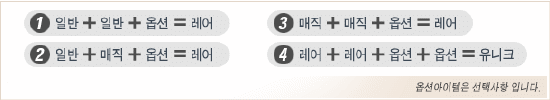Âü°í·Î, °°Àº ¿ä±¸ ½ºÅÈÀÌ ºÙÀº ¾ÆÀÌÅÛ³¢¸®ÀÇ Á¶ÇÕÀÌ ¼º°øÇÏ°Ô µÇ¸é °¡Àå ³ôÀº ¿ä±¸ ½ºÅÈÀÌ ºÎ°úµÇ¾î ·¹¾î ¹× À¯´ÏÅ© ¾ÆÀÌÅÛÀ» ¾òÀ» ¼ö ÀÖ´Ù.