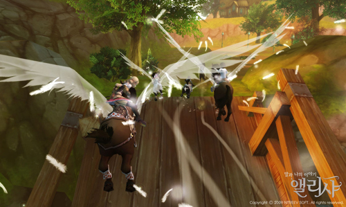 <¾Ù¸®»þ>´Â Àΰ£¿¡°Ô Ä£¼÷ÇÑ µ¿¹°ÀÎ ¡®¸»¡¯°ú ¡®·¹À̡̽¯À» Á¢¸ñ½ÃŲ ¡®¾×¼Ç ¶óÀ̵ù¡¯À̶ó´Â »õ·Î¿î À帣ÀÇ °ÔÀÓÀÌ´Ù. °ÔÀ̸ӵéÀº ¸»À» Ÿ°í ´Þ¸®¸ç Á¡ÇÁ, ±Û¶óÀ̵ù, ½½¶óÀ̵ù µîÀÇ ¾×¼ÇÀ» ÅëÇØ ¹Ù¶÷À» °¡¸£¸ç ÁúÁÖÇÏ´Â Äè°¨°ú ¸®µå¹ÌÄÃÇÑ ¼Õ¸ÀÀ» ¸¸³£ÇÒ ¼ö ÀÖ´Ù. <¾Ù¸®»þ>ÀÇ Å×½ºÅÍ ´ç÷ÀÚ ¹ßÇ¥ ¹× °ÔÀÓ¿¡ ´ëÇÑ º¸´Ù ÀÚ¼¼ÇÑ ³»¿ëÀº °ø½Ä ȨÆäÀÌÁö(http://alicia.gametree.co.kr)¸¦ ÅëÇØ È®ÀÎÇÒ ¼ö ÀÖ´Ù.