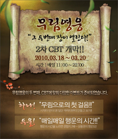 ¢ßÀ̿¼ÒÇÁÆ®(´ëÇ¥ ¹Ú½ÂÇö)´Â Àڻ簡 ¼ºñ½ºÇÏ´Â ¡°¼¼»ó¿¡¼ Á¦ÀÏ ½¬¿î MMORPG < ¹«¸²¿µ¿õ(Ùë×ùçÈê©), http://www.murimhero.co.kr/ >¡±ÀÇ µÎ ¹øÂ° ºñ°ø°³½Ã¹üÅ×½ºÆ®(ÀÌÇÏ 2Â÷ CBT)¸¦ ±ÝÀÏ (18ÀÏ)ºÎÅÍ 20ÀϱîÁö 3Àϰ£ ½Ç½ÃÇÑ´Ù°í ¹àÇû´Ù.