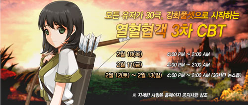 ¸¶»ó¼ÒÇÁÆ®°¡ °³¹ß ¹× ¼ºñ½º ÇÏ´Â 2D¹«ÇùMMORPG `¿Ç÷Çù°´`ÀÌ 2¿ù 10ÀϺÎÅÍ 13ÀϱîÁö 4Àϰ£ 3Â÷ CBT¸¦ ½Ç½ÃÇÑ´Ù°í ¹àÇû´Ù.