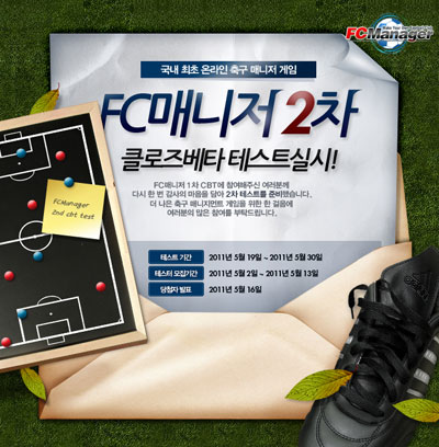 ¢ßÇѺû¼ÒÇÁÆ®(´ëÇ¥ ±è±â¿µ)´Â ±ÝÀÏ(5¿ù 2ÀÏ)ºÎÅÍ ¡°±¹³» ÃÖÃÊ ¿Â¶óÀÎ Ã౸ ¸Å´ÏÁö¸ÕÆ® °ÔÀÓ¡± < FC¸Å´ÏÀú > (http://fcm.hanbiton.com) 2Â÷ ºñ°ø°³Å×½ºÆ®ÀÇ Âü°¡ÀÚ¸¦ ¸ðÁýÇÑ´Ù.