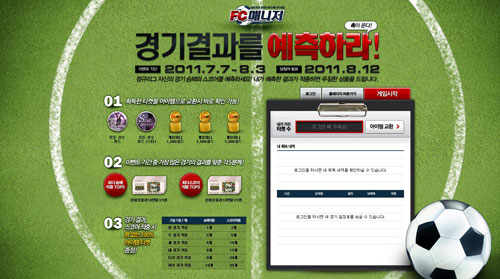 ¢ßÇѺû¼ÒÇÁÆ®(´ëÇ¥ ±è±â¿µ)´Â ±ÝÀÏ(7¿ù 7ÀÏ)ºÎÅÍ ¡°±¹³» ÃÖÃÊ ¿Â¶óÀÎ Ã౸ ¸Å´ÏÀú °ÔÀÓ¡± < FC¸Å´ÏÀú > (http://fcm.hanbiton.com)ÀÇ °ø°³ ¼ºñ½º¸¦ ½ÃÀÛÇÏ°í ´Ù¾çÇÑ À̺¥Æ®¸¦ ÁøÇàÇÑ´Ù.
