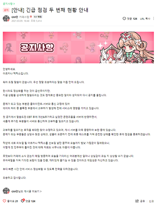 °ü·ÃÇØ °ÔÀÓºôÀº ¡°Å¬¶óÀ̾ðÆ®-¼¹ö¿Í Åë½Å °úÁ¤¿¡ ÀÖ¾î µ¥ÀÌÅÍ Ã³¸® Áß ºÒƯÁ¤ ºÎºÐ¿¡¼ °úºÎÇϰ¡ ¹ß»ýÇØ Àüü ¼ºñ½º¿¡ ¿µÇâÀ» ³¢Ä¡°í ÀÖ´Ù¡±¶ó¸ç ¡°¹®Á¦°¡ µÇ´Â ºÎºÐµéÀº »ó´ç¼ö ãÀº »óÅÂÀÌ°í ¼²ºÒ¸® ¿ÀÇÂÇϱâ Àü¿¡ ÃÖÁ¾ Å×½ºÆ®¸¦ °ÅÃÄ ¿ÂÀüÇÑ »óŸ¦ È®ÀÎÇÑ ÈÄ¿¡ Á¡°ËÀ» Á¾·áÇϰڴ١±¶ó°í ¹ßÇ¥Çß´Ù.