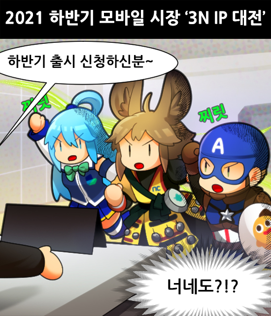 ±¹³» °ÔÀÓ ¾÷°è¸¦ ´ëÇ¥ÇÏ´Â ³Ø½¼(Nexon), ³Ý¸¶ºí(Netmarble), ¿£¾¾¼ÒÇÁÆ®(Ncsoft) ÅëĪ 3NÀÌ 2021³â ÇϹݱ⠸ð¹ÙÀÏ ½ÅÀÛÀ¸·Î ´ë°áÇÑ´Ù. Àαâ IP(Intellectual Property, Áö½ÄÀç»ê±Ç)¸¦ Ȱ¿ë, ´Ù¾çÇÑ À¯Àú ÃëÇâÀ» ¸¸Á·½Ãų ¼ö ÀÖ´Â ÀÛǰµéÀ» ³»³õÀ¸·Á ÇÑ´Ù.